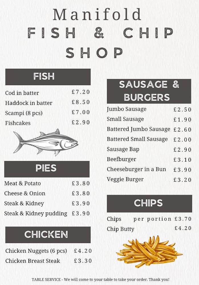 Located on Market Place in Longnor, Buxton, Manifold Fish & Chip Shop embodies the essence of a traditional British fish and chip shop. Its family-run roots contribute to a warm atmosphere and personalized service that keeps customers coming back. The shop is easily accessible, featuring wheelchair-friendly entrances and free parking options nearby. This cozy destination draws in a mix of tourists and locals, each eager to indulge in the crispy, freshly prepared dishes that have garnered numerous positive reviews.